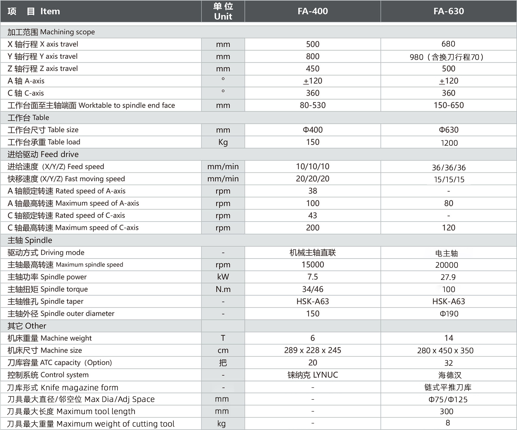 FA 系列立式五轴高速加工中心,是为五轴类产品零件及复杂模具加工需求所设计的最新产品;该系列产品结构合理、刚性强,采用